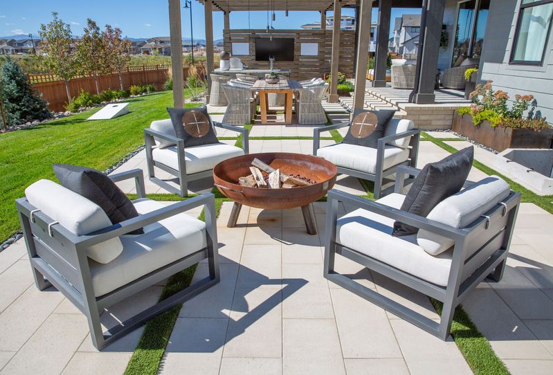 Space planning occurs first to determine which elements will be incorporated into your patio in Fort Collins. Backyard ideas could include an outdoor kitchen, dining area, fire table with deep seating, a shade structure, or wind coverage.